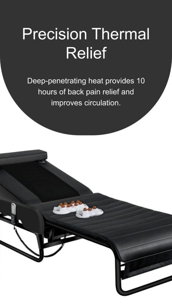- Heavy duty triple motors design in this infrared heated massage bed.